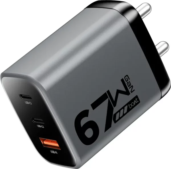 boAt 67 W GaN 3 A Wall Charger for Mobile with Detachable Cable (Ash Grey)
